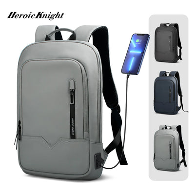 Mochila Heroic Knight para laptop de 14" Mochila fina masculina multifuncional para negócios, à prova d'água, com carregamento USB, mochila de viagem para trabalho