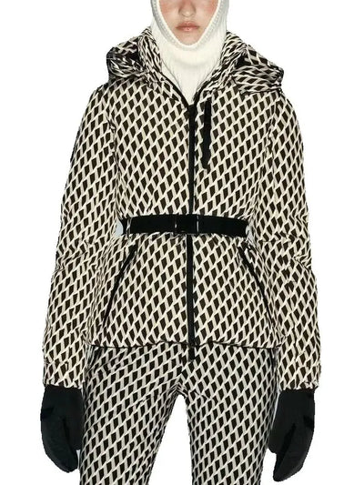Casacos femininos de inverno com capuz, cintura alta, acolchoados, esportivos, parkas, com cinto, elegantes, grossos, quentes, à prova de vento, jaquetas de esqui