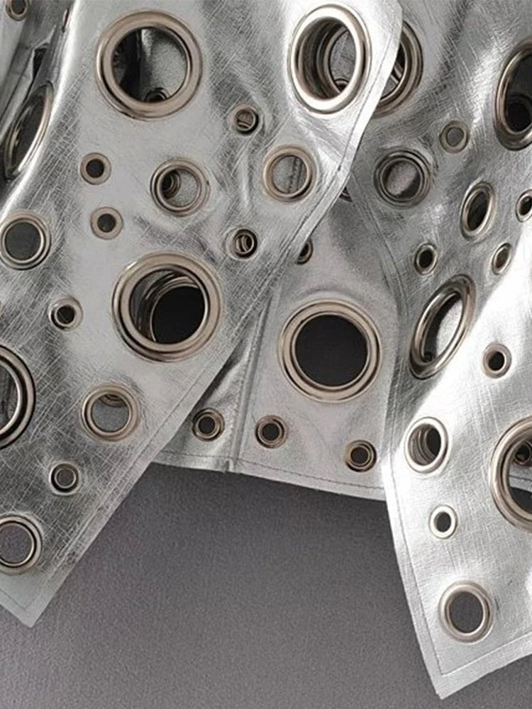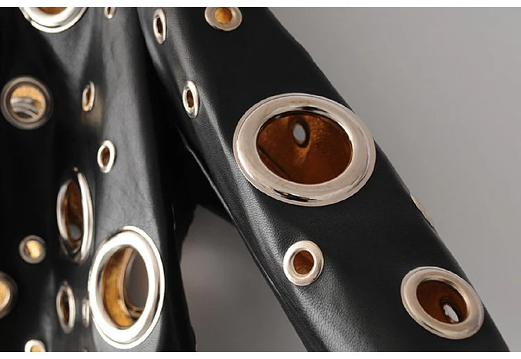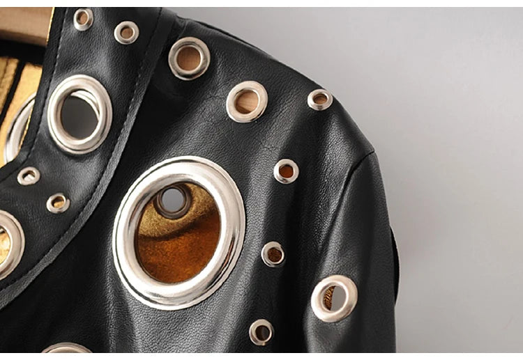 Jaqueta curta de couro sintético Lautaro Runway com recorte dourado e rebite, roupas de grife estilosas e estilosas para mulheres, moda europeia e americana 2022