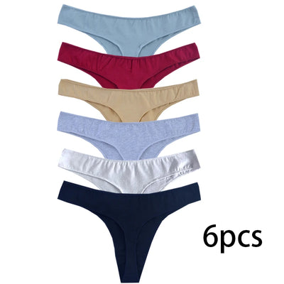 Conjunto de 6 peças de calcinhas femininas de algodão, fio dental, cintura baixa, biquíni sexy feminino, 7 cores sólidas, macias para meninas, tamanho S-XL