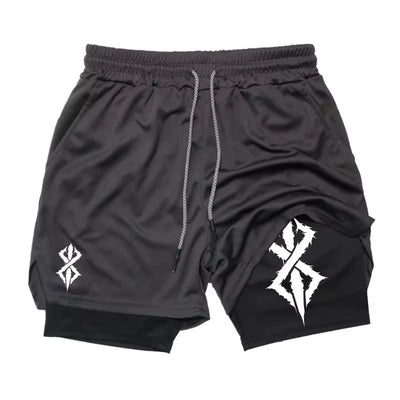 Shorts de corrida 2 em 1 com estampa cruzada para homens, shorts esportivos de academia cristã com forro de compressão, bolso para celular e toalha G