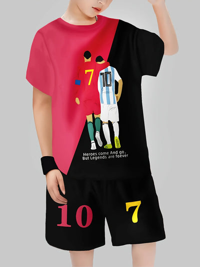 Conjunto infantil de manga curta Ronaldo e Messi verão 2025, confortável, macio e respirável